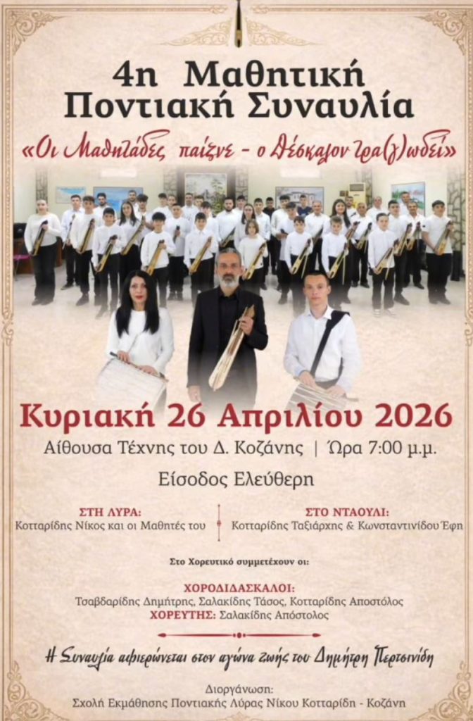 Koζάνη: 4η Μαθητική Ποντιακή Συναυλία την Κυριακή 26 Απριλίου στην Αίθουσα Τέχνης