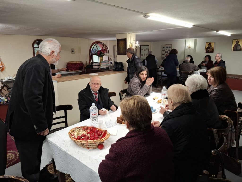 Ακολούθησε εορταστικό κέρασμα (καφές, γλυκίσματα. κλπ) από τις γυναίκες στον υπόγειο χώρο του Μητροπολιτικού Εξωκλησιού.