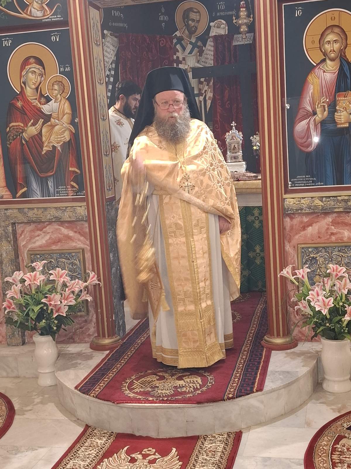Ο Σεβασμιώτατος Μητροπολίτης Σερβίων και Κοζάνης κ. Παύλος παρέστη (16-4-2026, Τετάρτη της Διακαινησίμου) στην τελεσθείσα Πασχαλινή Θεία Λειτουργία στο Μητροπολιτικό Εξωκλήσι του Αγίου Βαραδάτου Κουβουκλίων, συμπροσευχόμενος, στο Άγιο Βήμα. Ευλόγησε το λαό και κήρυξε το θείο λόγο.