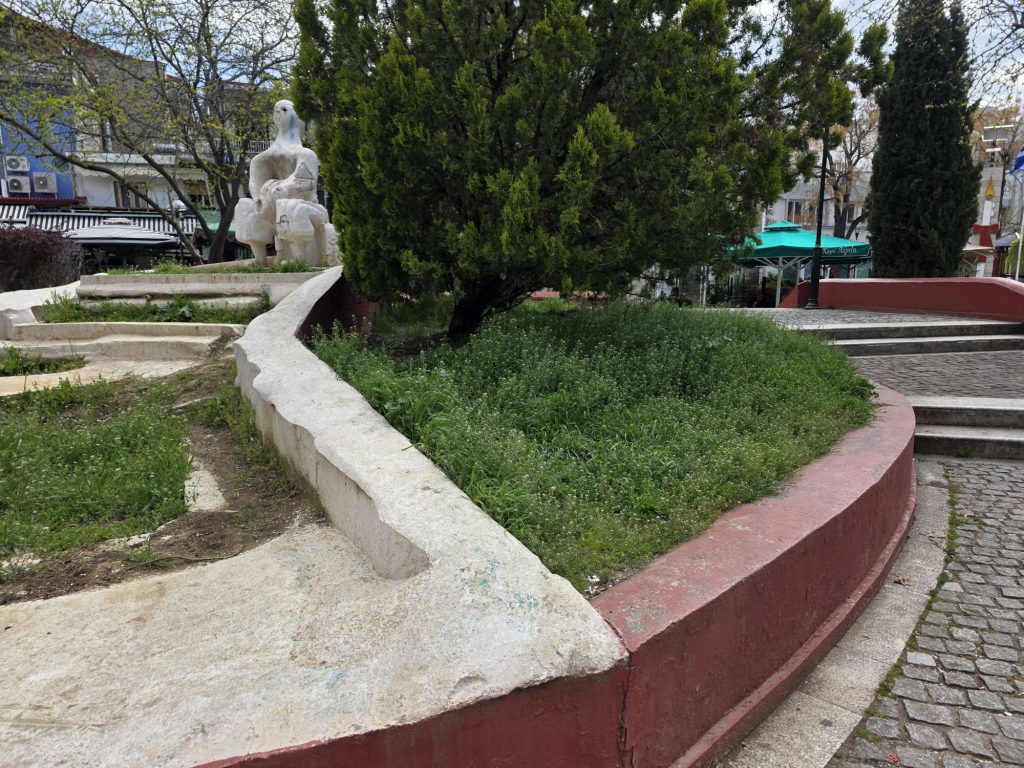 Όπως φαίνεται και στις φωτογραφίες που μας απέστειλε, ο χώρος γύρω από το συντριβάνι είναι γεμάτος αγριόχορτα, ενώ η γενικότερη εικόνα δίνει αίσθηση εγκατάλειψης στο πιο κεντρικό σημείο της πόλης.