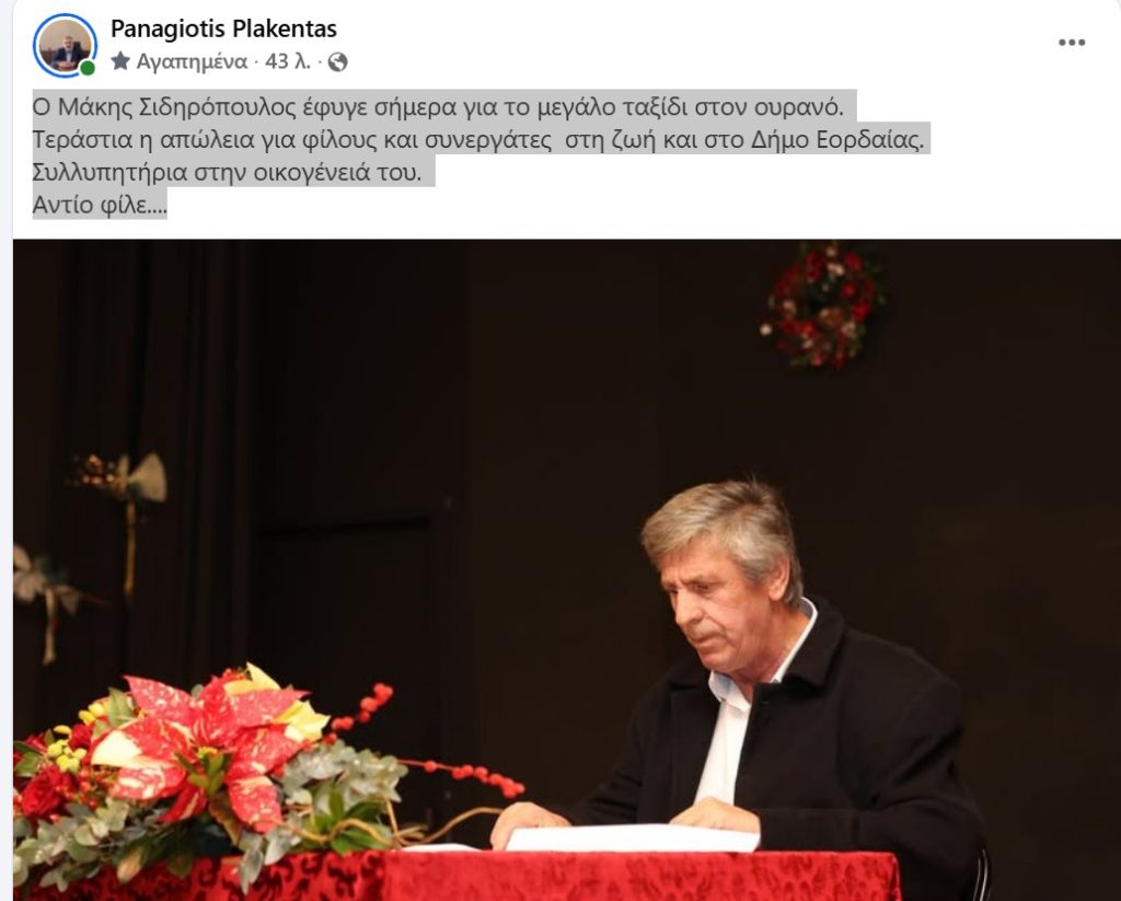 ναι….μεγάλη απώλεια..ας γίνει αυτή η μέρα αργία για τα επόμενα χρόνια για τον δήμο Εορδαίας…