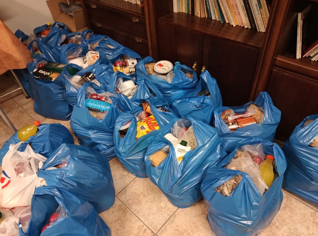 Τα δέματα περιείχαν 1 κιλό χοιρινό ανά άτομο, 1 λίτρο ελαιόλαδο ανά άτομο, κασέρι, ζυμαρικά, όσπρια, γάλα, δημητριακά, ρύζι, μαρμελάδα, πραλίνα φουντουκιού, ζάχαρη, κονσέρβες, αναψυκτικά, χυμούς, κρουασάν, μπισκότα, πίτες αλμυρές και βεβαίως τσουρέκι και κόκκινα αυγά, μεταξύ πολλών ακόμη ειδών. Ευχαριστούμε ιδιαιτέρως όλους τους εθελοντές και τις εθελόντριες που κοπίασαν για την προετοιμασία και τη διανομή όλων αυτών των δεμάτων.