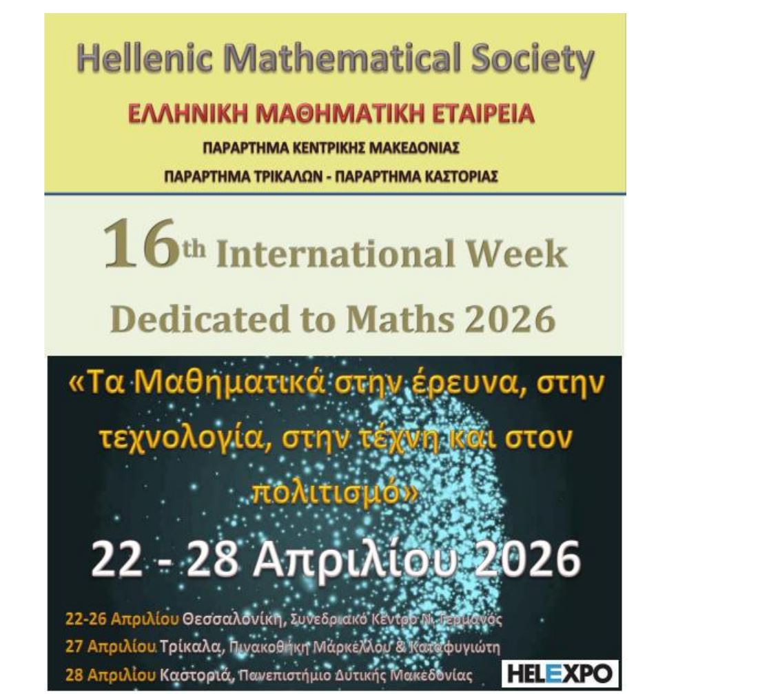 Στη 16η Διεθνή Μαθηματική Εβδομάδα συμμετέχει το Πανεπιστήμιο Δυτικής Μακεδονίας, συμβάλλοντας στον διεθνή επιστημονικό διάλογο για τον ρόλο των Μαθηματικών στην έρευνα, την τεχνολογία, την τέχνη και τον πολιτισμό.