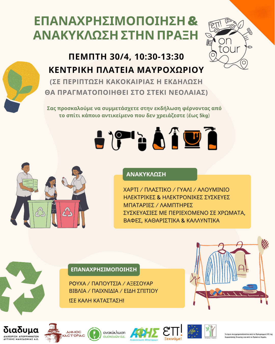 Η δράση υλοποιείται στο πλαίσιο του έργου LIFE-IP CEI-Greece – (LIFE18 IPE/GR/000013) για την εφαρμογή της Κυκλικής Οικονομίας στην Ελλάδα σε συνεργασία της ΔΙΑΔΥΜΑ ΑΕ με την Ανακύκλωση Συσκευών Α.Ε. και την ΑΦΗΣ Α.Ε.