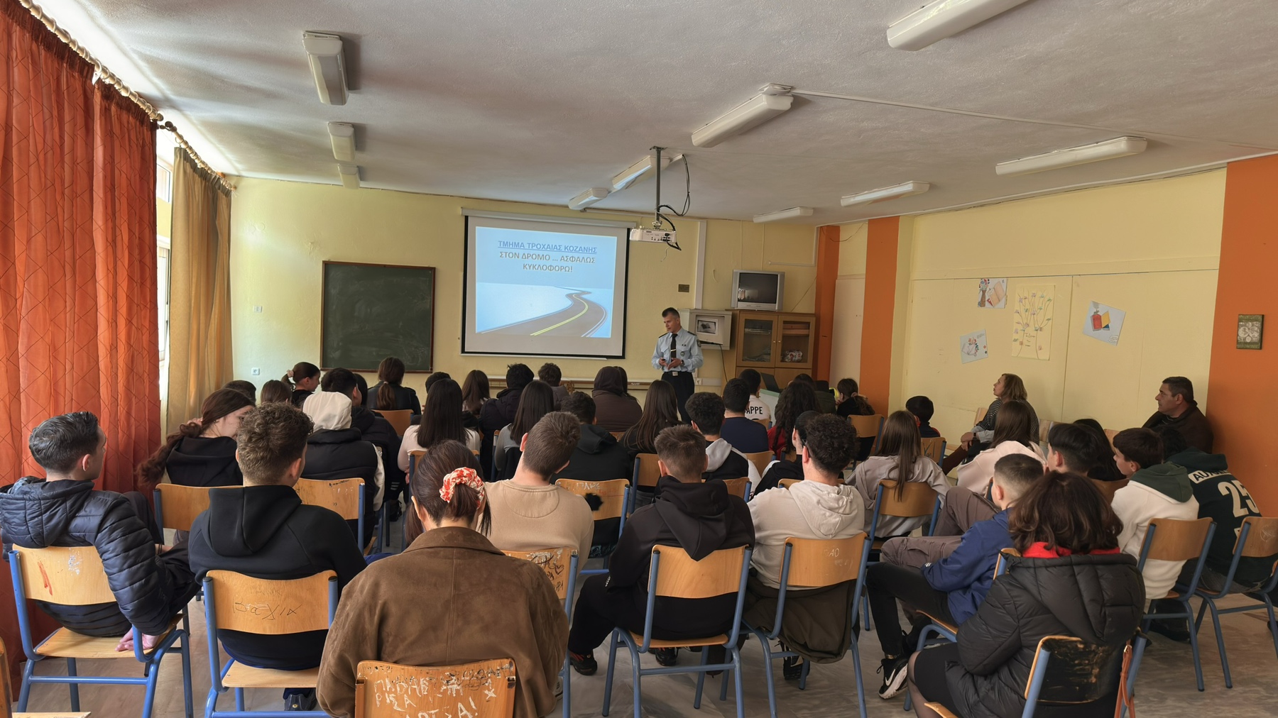 Αξιωματικός του Τμήματος Τροχαίας Κοζάνης πραγματοποίησε εκπαιδευτική επίσκεψη στο Γυμνάσιο Καπνοχωρίου, στο πλαίσιο δράσεων ενημέρωσης και ευαισθητοποίησης των μαθητών σε θέματα οδικής ασφάλειας.