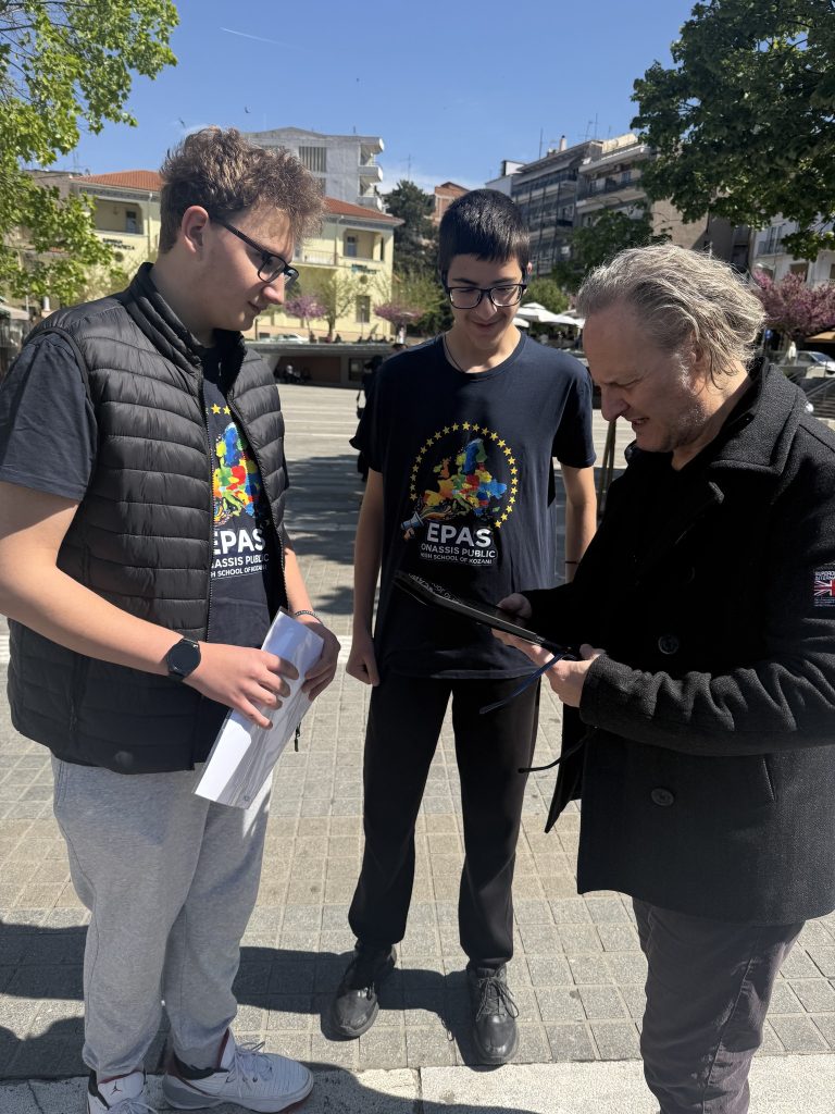 Σε μια δυναμική πρωτοβουλία για την ευαισθητοποίηση της τοπικής κοινωνίας για την κλιματική κρίση και την αποτύπωση της περιβαλλοντικής συνείδησης της προχώρησαν οι μαθητές του Ωνασείου Λυκείου Κοζάνης, στο πλαίσιο του προγράμματος «Σχολεία-Πρέσβεις του Ευρωπαϊκού Κοινοβουλίου» (EPAS) τη Δευτέρα 27/4/2026στην κεντρική πλατεία της Κοζάνης.