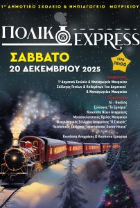 Μια ξεχωριστή χριστουγεννιάτικη εκδήλωση με τίτλο «Πολικό Express» διοργανώνουν το 1ο Δημοτικό Σχολείο & το Νηπιαγωγείο Μουρικίου, το Σάββατο 20 Δεκεμβρίου 2025, στις 18:00. Τη διοργάνωση έχουν το 1ο Δημοτικό Σχολείο και το Νηπιαγωγείο Μουρικίου, σε συνεργασία με τον Σύλλογο Γονέων & Κηδεμόνων, ενώ στη δράση συμμετέχουν ο Άγιος Βασίλης, ο Σύλλογος «Το Εμπόριο», η […]