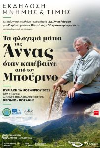 Η Περιφέρεια Δυτικής Μακεδονίας, η Τοπική Κοινότητα Χρωμίου, το Παγκόσμιο Γεωπάρκο UNESCO Γρεβενών – Κοζάνης, ο Εκπολιτιστικός και Αθλητικός Σύλλογος Χρωμίου «Η Ρωμιοσύνη», ο ΤΟΕΒ Χρωμίου, η Κοινωνική Συνεταιριστική Επιχείρηση «ΓεωΘαύμα Ελλάς» και το Ινστιτούτο Επικοινωνίας, Ανάπτυξης & Καινοτομίας +PRAXIS, διοργανώνουν εκδήλωση μνήμης και τιμής προς την αείμνηστη Γεωλόγο – ερευνήτρια Δρ. Άννα Ράσσιου για […]