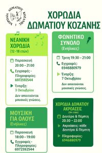 ΑΚΡΟΑΣΕΙΣ-ΝΕΑ ΤΜΗΜΑΤΑ Η Χορωδία Δωματίου ξεκινώντας την φετινή χρονιά δίνει την ευκαιρία σε όλους ανεξάρτητα από την ηλικία ή τις μουσικές τους γνώσεις να γνωρίσουν και να βιώσουν τις μοναδικές εμπειρίες της συμμετοχής σε ένα φωνητικό σύνολο. Η επαφή με το χορωδιακό τραγούδι έχει πολλαπλά οφέλη στην ψυχική και σωματική υγεία αλλά παράλληλα είναι μια […]