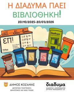 Φέτος συμπληρώνονται 10 χρόνια από την έναρξη του Προγράμματος Περιβαλλοντικής Εκπαίδευσης (ΠΠΕ) της ΔΙΑΔΥΜΑ Α.Ε., το οποίο υλοποιείται σε συνεργασία με σχολεία της Δυτικής Μακεδονίας. Με αφορμή αυτή τη σημαντική επέτειο, η ΔΙΑΔΥΜΑ Α.Ε., σε συνεργασία με την Κοβεντάρειο Δημοτική Βιβλιοθήκη Κοζάνης της Διεύθυνσης Πολιτισμού Αθλητισμού και Νέας Γενιάς του Δήμου Κοζάνης, διοργανώνει την έκθεση […]