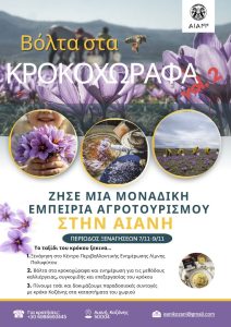 Ζήσε μία μοναδική εμπειρία Αγροτουρισμού στην Αιανή το δεύτερο Σαββατοκύριακο του Νοεμβρίου 7-9/11. Για δεύτερη συνεχόμενη χρονιά η Δημοτική Κοινότητα Αιανής σε συνεργασία με τους κροκοπαραγωγούς και την υποστήριξη του Εμπορικού Συλλόγου Αιανής διοργανώνουν μία ξεχωριστή εμπειρία Αγροτουρισμού. Οι ξεναγήσεις περιλαμβάνουν: Επίσκεψη στο Κέντρο Περιβαλλοντικής Ενημέρωσης Λίμνης Πολυφύτου και Λίμνης Ιλαρίωνα, ενός χώρου προβολής της […]