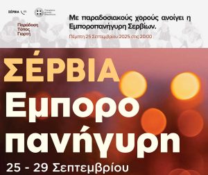 Η Εμποροπανήγυρη Σερβίων ξεκινά με χορευτικά από τους πολιτιστικούς συλλόγουςΟ Δήμος Σερβίων ανακοινώνει την έναρξη της Εμποροπανήγυρης Σερβίων την Πέμπτη 25 Σεπτεμβρίου 2025 και ώρα 20:00.Η φετινή διοργάνωση θα ξεκινήσει με πολιτιστικό πρόγραμμα, στο οποίο θα συμμετάσχουν χορευτικά τμήματα πολιτιστικών συλλόγων του Δήμου, παρουσιάζοντας παραδοσιακούς χορούς και δίνοντας έναν ιδιαίτερο τόνο στην έναρξη της εμποροπανήγυρης.Προσκαλούμε […]
