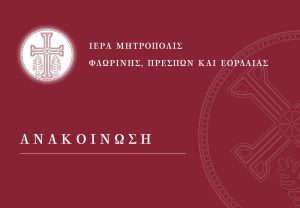 Η Ιερά Μητρόπολις Φλωρίνης, Πρεσπών και Εορδαίας εκφράζει θερμές ευχαριστίες προς όλους τους ευσεβείς χριστιανούς που, με αγάπη και πίστη, συνεχίζουν να καταθέτουν τα χρήματά τους για τα έργα αποκατάστασης του Ιερού Ναού της Αγίας Παρασκευής Φλώρινας. Όπως είχαμε δεσμευθεί, το όνομα κάθε ευλαβούς δωρητή θα δημοσιεύεται, ως ελάχιστη ένδειξη τιμής και ευγνωμοσύνης για […]