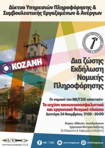 Το ισχύον κοινωνικοασφαλιστικό και εργασιακό θεσμικό πλαίσιο θα αποτελέσει το θέμα της δια ζώσης εκδήλωσης Νομικής πληροφόρησης που διοργανώνει το Εργατικό Κέντρο Νομού Κοζάνης, σε συνεργασία με το Ι.Ν.Ε της Γ.Σ.Ε.Ε τη Δευτέρα 24 Νοεμβρίου 2025 στην αίθουσα συνεδριάσεών του, στην Κοζάνη. Νομικοί Σύμβουλοι του Ινστιτούτου Εργασίας θα απαντήσουν σε καίρια ερωτήματα που αφορούν […]