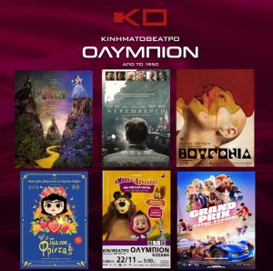 ΑΙΘΟΥΣΑ 1 Προβάλλεται το συγκλονιστικό ιστορικό δράμα ΝΥΡΕΜΒΕΡΓΗ Πρωταγωνιστούν : ΡΑΣΕΛ ΚΡΟΟΥ, ΡΑΜΙ ΜΑΛΕΚ 2 ΠΡΟΒΟΛΕΣ 6.45 (Αίθουσα 2) & 9.30 (Αίθουσα 1) Σάββατο 22/11, 1 προβολή 9.30 Προβάλλεται η παιδική ταινία ΓΕΙΑ ΣΟΥ, ΦΡΙΝΤΑ Σάββατο και Κυριακή, 1 ΠΡΟΒΟΛΗ 5.15 στα Ελληνικά Η επίσημη θεατρική παράσταση με τα αυθεντικά κοστούμια του εξωτερικού […]