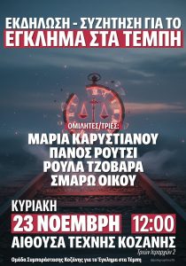 Από τον ΔΕΔΔΗΕ Α.Ε./Περιοχή Κοζάνης ανακοινώνεται ότι: Tην Κυριακή 23-11-2025 θα γίνει διακοπή ηλεκτρικού ρεύματος από ώρα 08:00 έως 14:30 στις εξής περιοχές και Δ.Δ του Δήμου Κοζάνης: Μελίσσια. Ζητούμε, την κατανόηση των καταναλωτών και θα θέλαμε να επισημάνουμε ότι η επανατροφοδότηση θα γίνει χωρίς προειδοποίηση ενδεχομένως και νωρίτερα. Γι’ αυτό τα δίκτυα και οι εγκαταστάσεις […]
