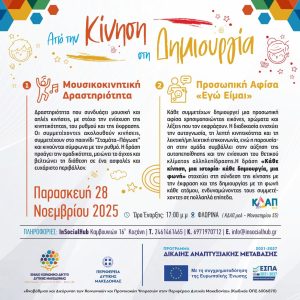 Ο Σύλλογος Γονέων και Κηδεμόνων του 2ου Δημοτικού Σχολείου Κοζάνης σας προσκαλεί στο Χριστουγεννιάτικο Bazaar που θα πραγματοποιηθεί το Σάββατο 29 Νοεμβρίου 2025, στην Εναλλακτική Σκηνή του ΔΗ.ΠΕ.ΘΕ. Κοζάνης (πάνω από την Αίθουσα Τέχνης), από τις 10:00 έως τις 20:00. Μικροί και μεγάλοι θα απολαύσουν face painting, κλήρωση δώρων, φωτογραφίες, μουσική, τατουάζ, κατασκευές και […]