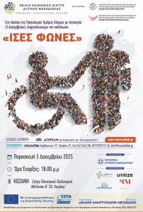 «ΙΣΕΣ ΦΩΝΕΣ» Εκδήλωση για την Παγκόσμια Ημέρα Ατόμων με Αναπηρία Παρασκευή 5 Δεκεμβρίου 2025 | 18:00 – 20:00 | Στέγη Ποντιακού Πολιτισμού, Κοζάνη Στο πλαίσιο της Παγκόσμιας Ημέρας Ατόμων με Αναπηρία (3 Δεκεμβρίου), η Περιφέρεια Δυτικής Μακεδονίας και το Ενιαίο Κοινωνικό Δίκτυο, σε συνεργασία με τα Κέντρα Επαγγελματικής Κατάρτισης και Αποκατάστασης Ατόμων με Αναπηρία (Ειδικά Εργαστήρια Κοζάνης […]