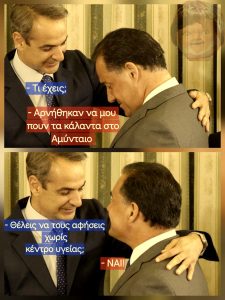 H γελοιογραφία στα μέσα κοινωνικής δικτύωσης με αφορμή όσα διαδραματίστηκαν κατά την έλευση του Υπουργού Υγείας Α. Γεωργιάδη στο Κέντρο Υγείας Αμυνταίου.