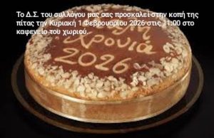 Την Κυριακή 1 Φεβρουαρίου 2026 θα τελεστεί θεία λειτουργία στον Ιερό Ναό Αγίου Νικολάου Παλαιογρατσάνου. Στη συνέχεια, στις 11:00, θα κόψουμε την καθιερωμένη βασιλόπιτα στο καφενείο του χωριού μας. Περιμένουμε τους συγχωριανούς και φίλους να μας τιμήσουν με την παρουσία τους. Το Δ.Σ.