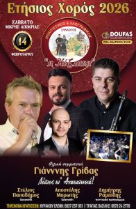 Ο Σύλλογος Σαμαριναίων Κοζάνης «Η ΑΓΙΑ ΠΑΡΑΣΚΕΥΗ» καλεί τα μέλη και τις φίλες του σε αποκριάτικο απογευματινό γυναικών που διοργανώνει με την ορχήστρα του Χάρη Σαλαγκιώτη την Τετάρτη 11 Φεβρουαρίου 2026 και ώρα 18:00 στην άνω αίθουσα της καφετέριας 4 COFFE (Κόμβος – Λαρίσης Θεσσαλονίκης). Σας περιμένουμε για ένα ευχάριστο απόγευμα με ζωντανή μουσική, πολύ […]