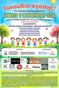 < Ο Πολιτιστικός Σύλλογος Οινόης Κοζάνης «ΧΡΥΣΑΝΘΟΣ» συνδιοργανώνει με την ομάδα Εθελοντών Κοζάνης “ΔΗΜΗΤΡΙΟΣ ΔΑΪΡΟΥΣΗΣ” φιλανθρωπική εκδήλωση – συναυλία αγάπης. Η εκδήλωση θα πραγματοποιηθεί το Σάββατο 7 Φεβρουαρίου 2026 στην Αίθουσα Τέχνης του Δήμου Κοζάνης στις 18.00 μμ και ΟΛΑ τα έσοδα θα διατεθούν σε επτά (7) παιδιά με πολύ σοβαρά προβλήματα υγείας. Η τιμή […]