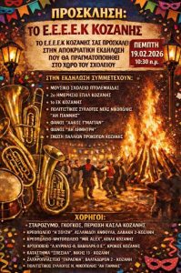 To E.E.E.E.K. Κοζάνης σας προσκαλεί στη Αποκριάτικη εκδήλωση που θα πραγματοποιηθεί στο χώρο του σχολείου την Πέμπτη 19/2 στις 10:30 π.μ..