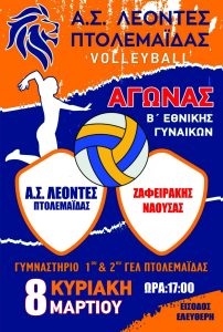 Αγώνες volleyball Κ18 και Β Εθνικής γυναικών,την Κυριακή 8 Μαρτίου .