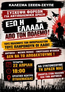 Συνάδελφοι και συναδέλφισσες, Η εμπλοκή της χώρας μας στους πολεμικούς σχεδιασμούς δεν είναι κάτι μακρινό. Τη ζούμε καθημερινά στην τσέπη μας και στη ζωή μας. Οι εργαζόμενοι, ο λαός, ήδη πληρώνουμε βαρύ το τίμημα. Η ακρίβεια στα καύσιμα εκτοξεύει το κόστος μετακίνησης και μεταφοράς. Οι τιμές στα τρόφιμα και στα είδη πρώτης ανάγκης αυξάνονται συνεχώς. […]