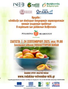 Hμερίδα με θέμα “Ανάδειξη των ιδιαιτέρων διατροφικών χαρακτηριστικών τοπικών γεωργικών προϊόντων – Η περίπτωση των ροδακίνων Βελβεντού” την Τετάρτη 24 Σεπτεμβρίου στην Σιάτιστα.