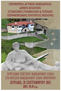 Σας προσκαλούμε να τιμήσετε με την παρουσία σας, τον εορτασμό της επετείου του Μακεδονικού Αγώνα και της συμπλήρωσης 147 χρόνων από την Επανάσταση της Επαρχίας Ελιμειας, για την κατάργηση της συνθήκης του Αγίου Στεφάνου, ο οποίος θα πραγματοποιηθεί την Κυριακη,28η Σεπτεμβρίου 2025 και ώρα 10.30,στο Μουσείο του Μακεδονικού Αγώνα, στο όρος Μπουρινο. Με τιμή Ο […]