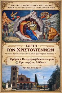Τα μέλη της παραδοσιακής χορωδίας του Συνδέσμου Γραμμάτων και Τεχνών Ν. Κοζάνης με την καθοδήγηση του χοράρχη Μυλωνά Ευαγγέλου και με τους ήχους παραδοσιακών οργάνων παρουσίασε το Σάββατο 20-12-2025 στο Λαογραφικό Μουσείο του Συνδέσμου ,κάλαντα από όλη την Ελλάδα, αναγγέλλοντας το θαυμαστό γεγονός της ενανθρωπήσεως του Κυρίου. Η συμμετοχή του κόσμου ήταν πολύ μεγάλη. Όλοι […]