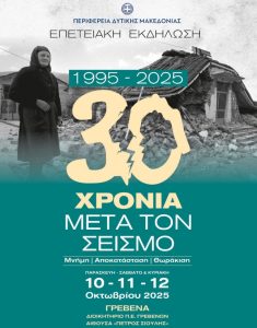 Συνέντευξη Τύπου με αφορμή την εκδήλωση με τίτλο: «1995-2025 | 30 χρόνια μετά τον σεισμό- Μνήμη, Αποκατάσταση, Θωράκιση» που διοργανώνει η Περιφέρεια Δυτικής Μακεδονίας, παραχώρησε σήμερα Δευτέρα 6 Οκτωβρίου 2025 ο Περιφερειάρχης Δυτικής Μακεδονίας Γιώργος Αμανατίδης, παρουσία του Αντιπεριφερειάρχη Πολιτικής Προστασίας, Κλιματικής Κρίσης και Π.ΑΜ.-Π.Σ.Ε.Α. Ιωάννη Κιοσσέ, του Προέδρου του Ινστιτούτου Πολιτικής Προστασίας […]