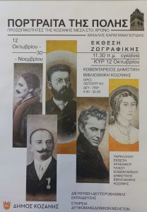 Ο Δήμος Κοζάνης εγκαινιάζει την Κυριακή 12 Οκτ. 2025 και ώρα 11:30 στη Κοβενταρειο Δημοτική βιβλιοθήκη Κοζάνης την έκθεση ζωγραφικής του Μιχαήλ Καραπαναγιωτιδης με τίτλο ΠΟΡΤΡΕΤΑ ΤΗΣ ΠΟΛΗΣ.
