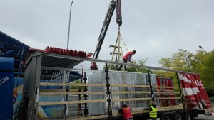 Στο εργοτάξιο του Κολυμβητηρίου Κοζάνης συνεχίζονται οι εργασίες ανακατασκευής, με τις εξελίξεις να δείχνουν ότι το έργο προχωρά με ικανοποιητικούς ρυθμούς. Σήμερα Δευτέρα (20/10) έφτασαν στην Κοζάνη, όπως βλέπετε στις φωτογραφίες και το βίντεο του kozan.gr, δύο νταλίκες από την Ιταλία με τον εξοπλισμό της κεντρικής μονάδας αερισμού, ένα από τα σημαντικότερα τεχνικά τμήματα του […]