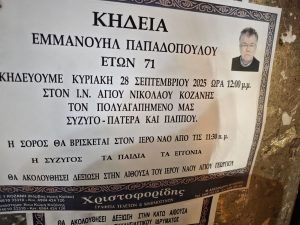 Έφυγε από την ζωή, σε ηλικία 71 ετών, ο Εμμανουήλ Παπαδόπουλος. Ήταν Πολιτικός Μηχανικός κι ασχολήθηκε με ιδιωτικά και δημόσια έργα. Ήταν αγαπητός στους συναδέλφους του οι οποίοι θα τον θυμούνται με εκτίμηση για την επιστημονική του επάρκεια και τον επαγγελματισμό του. Η κηδεία του θα γίνει την Κυριακή 28 Σεπτεμβρίου στον Ι.Ν. Αγ. […]