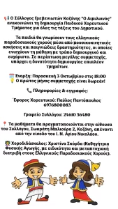 Ο σύλλογος Γρεβενιωτών Κοζάνης “Ο Αιμιλιανός” δημιουργεί παιδικό χορευτικό τμήμα.
